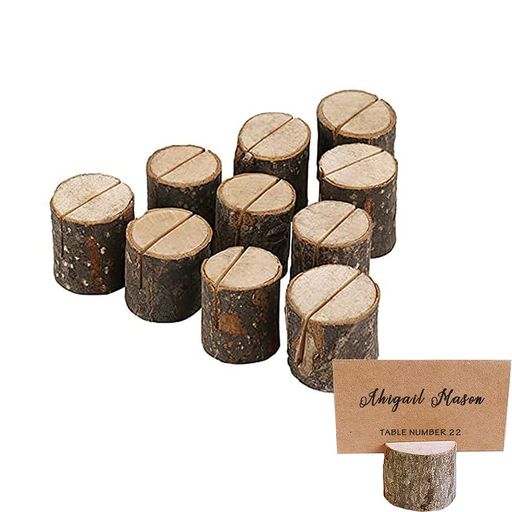 ■RICISUNG 木製 カードスタンド メモスタンド メモホルダー 写真立て 切り株 カード立て スワイヤー メモクリップ オフィス デスク 机上用