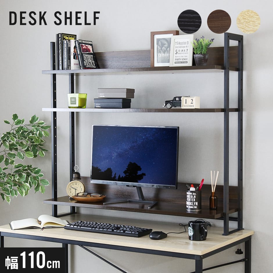 ■モニター台 机上ラック PCラック 作業台 3段 DORIS おしゃれ 高さ調整 収納 木目調 幅110cm オフィス デスク 棚 学習机 勉強 ロマル3段11