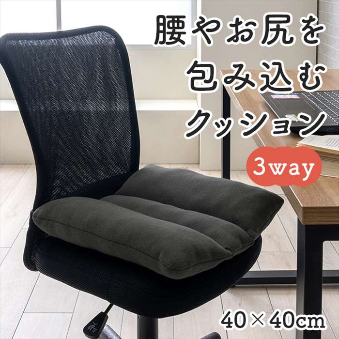 ■代引不可 オフィス デスク ワーク サポート クッション 腰 お尻 姿勢 お昼寝 セアテ ブラック 約40×40cm IKEHIKO 1212080038501