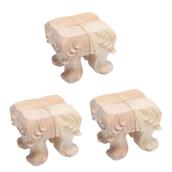 ■Frcolor 欧風彫刻家具脚 12個セット ラバーウッド(無塗装) 10×6×6cm ベージュ 合計約1.44kg ソファ キャビネット ドレッサー 交換 高
