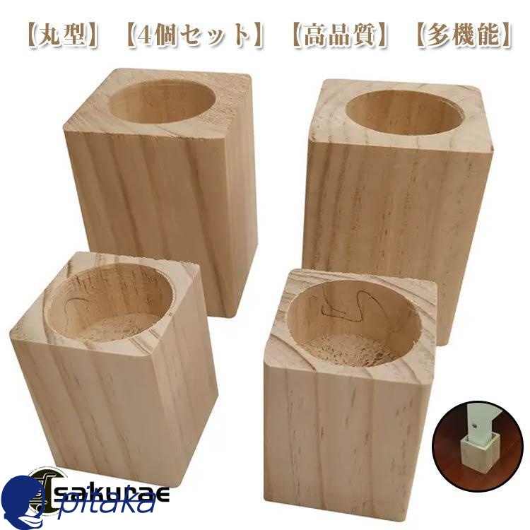 ■4個セット ベッド テレビ台 継ぎ足 ソファ 延長 家具 底上げ 継ぎ脚 高さ3/5/8/10cm 丸型 継ぎ足し テーブル 木製 長脚 足上げ 継足