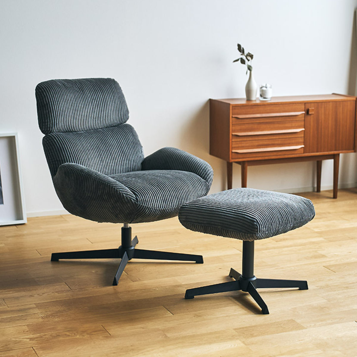 ■チェア 座面高45cm 回転 オットマン付き ベイム パーソナルチェア ( チェアー イス 椅子 いす コーデュロイ ファブリック 足置き ソファ