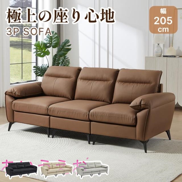 ■「 幅205cm」3人掛けソファー ソファ3人掛け 北欧 ソフト レザーソファー 3p モダン リビングソファー ソファーセット ソファセット PUソ