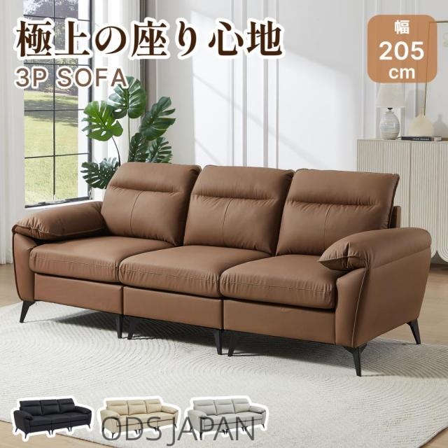 ■ODS「 幅205cm」3人掛けソファー ソファ3人掛け 北欧 ソフト レザーソファー 3p モダン リビングソファー ソファーセット ソファセット P