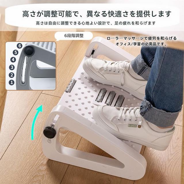 ■オットマン フットレスト 1個 角度調節 オフィス デスク下 ハイエース アルファード デリカ ヴェルファイア ふくらはぎサポート 足