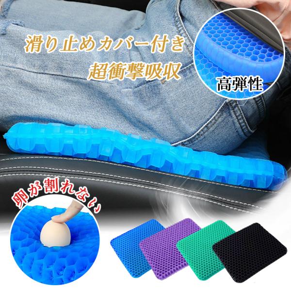 ■極厚 ハニカム 座布団 ゲル クッション ジェル 厚み1.5倍 滑り止めカバー付 超衝撃吸収 高弾性 シート 車用 オフィス 腰痛対策
