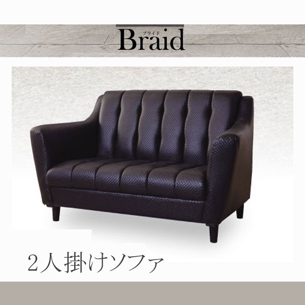 ■送料無料 編みこみ風のブラックレザー張り!光沢で上品な2人掛けソファー