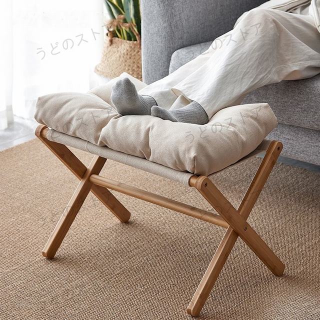 ■オットマン 折りたたみ 足置き台 スツール 竹製 低い腰掛け クッション付き ふわふわ 取り外し可能 洗えるカバー リビング 玄関 寝室 椅