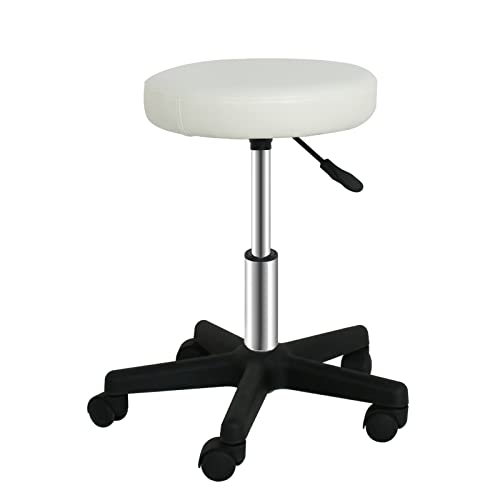 シンプル・ホワイト フリーサイズ ・商品仕様全体サイズ:約46x46x46〜60cm。座面サイズ:直径34cmx厚み9cm。重量:約3.8kg。耐荷重:115kg。色:ホワイト。美容院、エステサロンなどで業務用に活躍します ・丈夫で耐久性のある素材弾力性・柔軟性・通気性・防水性に優れたPUレザーを採用し、錆や腐食に強く、濡れた布で水や汚れなどを簡単に拭き取れます ・快適な座り心地中身は綿充填でソファみたいにクッション性が高く、ストレスを解消し、長時間座っても痛みはありません。ガス圧昇降レバーで、さまざまなシーンに合わせて座面高さを約46〜60cmまで簡単に調節することができます ・キャスター付きで移動便利5つのキャスターが付いており、楽々に移動でき、安定して座れます。お掃除の時にも便利です。360度回転可能な座面で座ったまま周囲の動きに対応することができます ・組み立てが簡単部品明細や組立方法など、付属の取扱説明書に従い、初心者の方でも15分ほど組み立てられます。