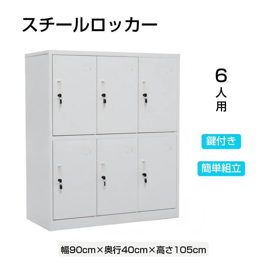 ロッカー おしゃれ スチールロッカー 6人用 ホワイト 鍵付き シリンダー錠 スペアキー付 3列2段 スチール製 収納 オフィス 業務用