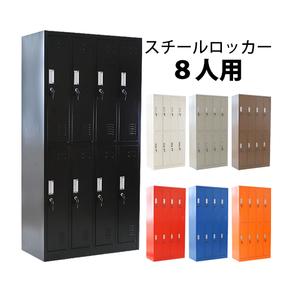 ■ロッカー おしゃれ スチールロッカー 8人用 鍵付き スペアキー付 4列2段 スチール製 収納 オフィス 事務所 会社 業務用 オフィスロッカー