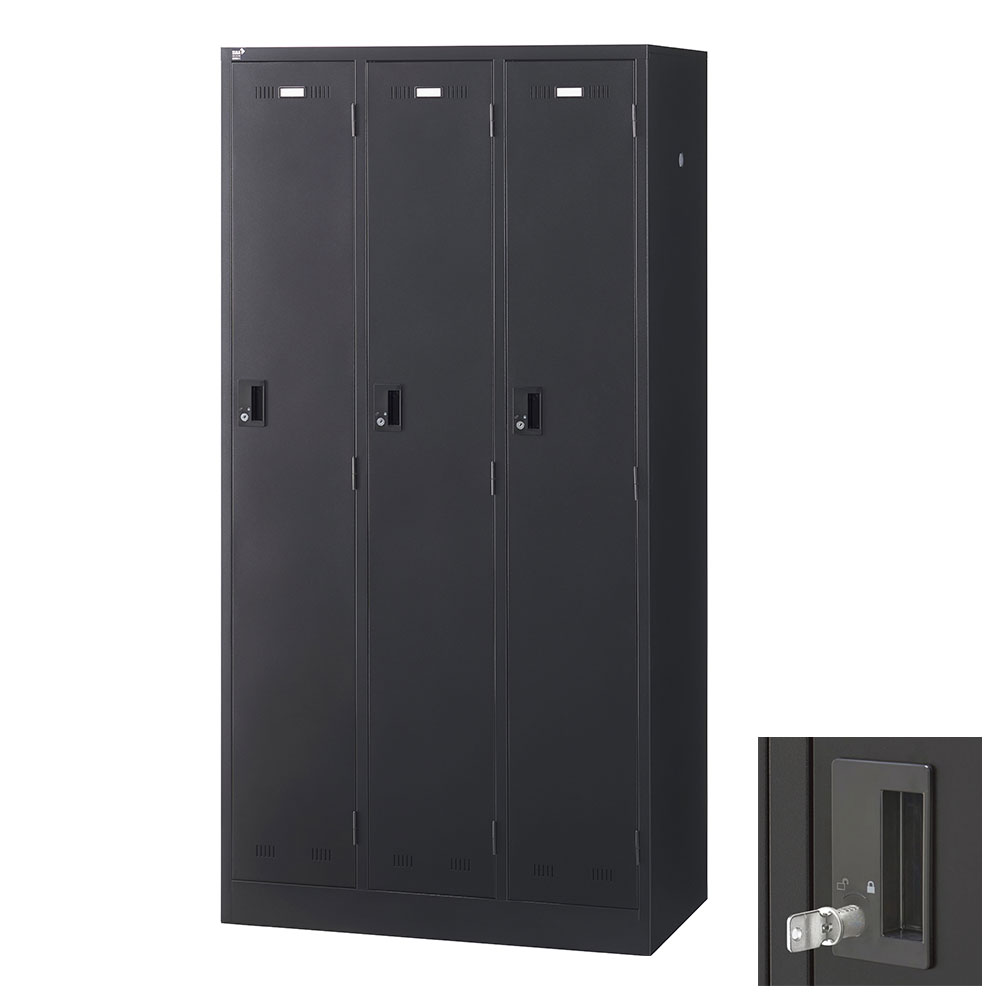 ■『代引不可』ロッカー 更衣室 スチール SLDKロッカー 3人用 内筒交換錠 ブラックサテン SLDK-3-T 生興『送料無料(一部地域除く)』