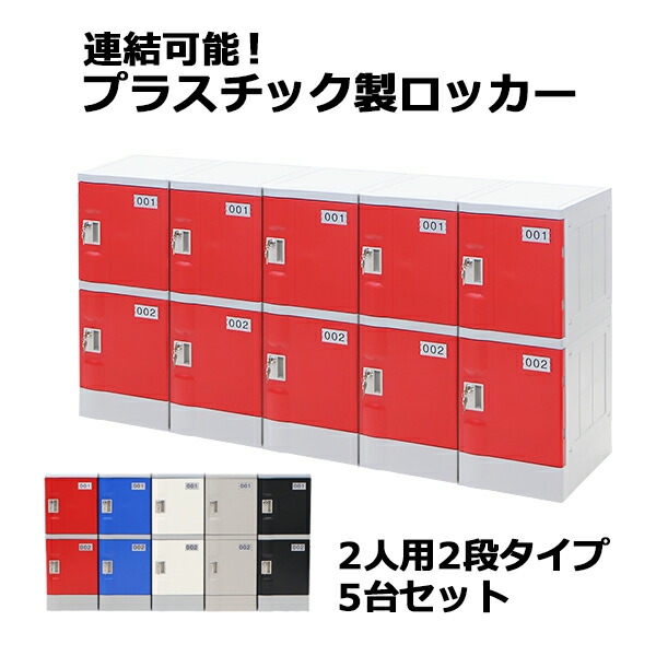 ■プラスチックロッカー ロッカー エコノミーモデル 弊社スチールロッカーより軽い 連結可能 2人用 2段 5台セット おしゃれ 水に強い 鍵付