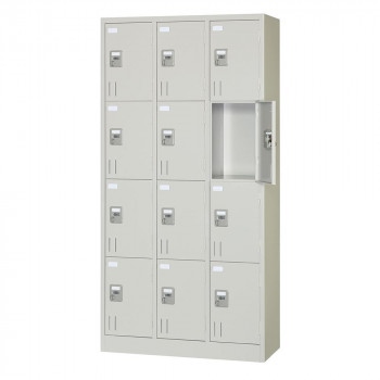 LK-30PSシリーズ ダイヤルナンバーロック式 充電ロッカー ●ダイヤルナンバーロック式 4桁数字のダイヤルで暗証番号を自由に設定できます。 施錠・解錠後は、暗証番号を知られないようご自身で番号崩しをします。 ※暗証番号を忘れた際は、管理者用の検索キーで番号を検索します。 ●電気用品安全法適合検査合格 電気用品安全法の基準(PSE)を満たし、適合検査に合格した製品です。 スマートフォン・タブレット・ノートPCを収納しつつ充電できます。 ※コンセント8個以上で同時充電の場合、通常より充電時間が延びることがございます。 ※充電器、電源アダプターなどは自身でご用意ください。 ●収納スペース スマートフォンを充電しながら、財布や貴重品など一緒に収納できるスペース。 各ボックスのコンセントは、収納の邪魔にならない奧方に設定しています。 外寸:W417×D320×H715(mm) 内寸:W160×D220×H87(mm) 質量:26.4kg 付属品:検索キー2本 コンセント6口(左縦列の各扉1口)、定格:AC100V 8A 50/60Hz ※内寸は1扉 ※記載は商品仕様の一部です。仕