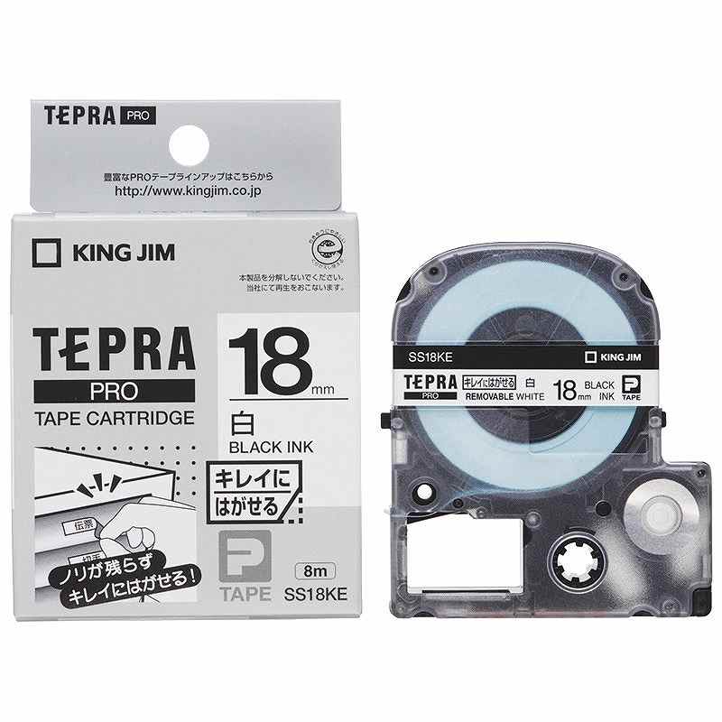 ■キングジム テプラ PROテープ きれいにはがせる 白 18mm幅 SS18KE