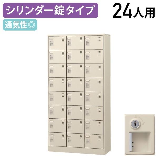 ■錠付きシューズロッカー 3列8段 24人用 下駄箱 スチール シューズボックス 鍵付き 代引不可 872432 法人宛限定