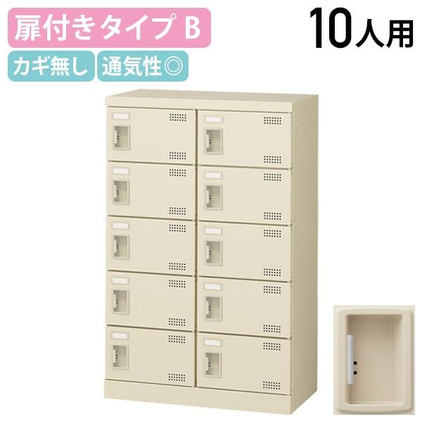 ■扉付きシューズロッカー Bタイプ 2列5段 10人用 錠無し W600 D350 H945 スチール 名札差し付き ニューグレー KSLB-M10-K2 872294 代引不