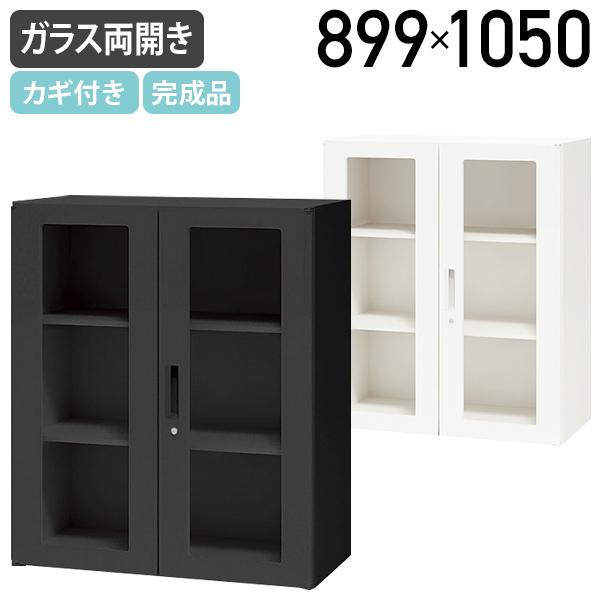 ■ガラス両開き書庫 CWシリーズ W899 D450 H1050 スチール書庫 スチール書棚 スチールキャビネット オフィス収納 代引不可 法人宛限定 NA-C