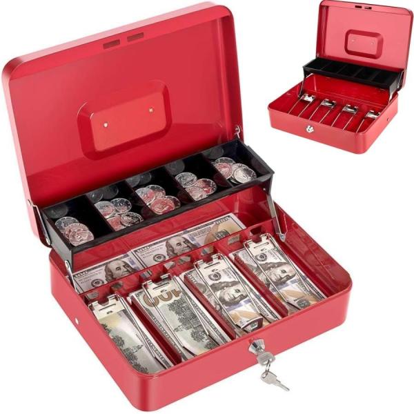 キーロック: キャッシュボックスにはプライバシーキーロックが付いており、貴重品を安全に保管できます。手提げ金庫の使いやすい: キーは操作が簡単で、片手で問題なく開けることができます。幅広のハンドルにより、保管と持ち運びが簡単です。 カンチレバーマネートレイ: キャッシュボックスが開くと、コイン用の5つのコンパートメントカンチレバートレイが自動的に開きます。金庫 家庭用の下には、追加の紙幣、メモ、領収書などを入れるための小さなコンパートメントがあります。 簡易金庫: キャッシュボックスの下部にある4つの強力なスプリングクリップにより、風の強い屋外環境でも紙幣や小切手を整理できます。 小口現金ボックス: このロックボックスは耐久性のあるスチール製で、しっかりと作られており、落としても簡単に破裂しません。屋内と屋外で使用できます。学校、スーパーマーケット、収納ロッカー、キャビネット、家族、ヤードセールなど。手提げ金庫小型小紙幣、コイン、小切手、領収書の保管に適しています。 サイズと色: 11.81 x 9.45 x 3.54インチ (300 x 240 x 90mm)