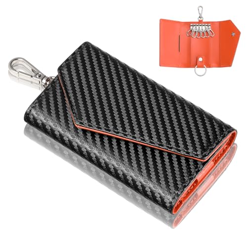 ■キーケース メンズ カーボンファイバーレザー 6フック 家庭用鍵 車用スマートキー 自転車キー オフィスキー 収納ポケット キャッシュカー