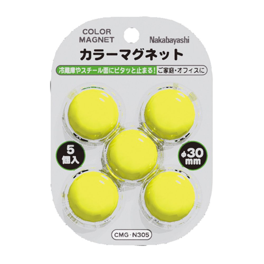 ■【メール便発送】ナカバヤシ カラーマグネット イエロー 直径30mm 5個入 CMG-N305Y