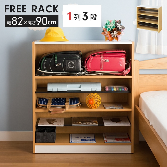 ■コミックラック 本棚 木製 幅82cm 1列 3段 ナチュラル フリーラック 漫画 マンガ コミック 収納 文庫本 単行本 収納ラック 可動棚 高さ調