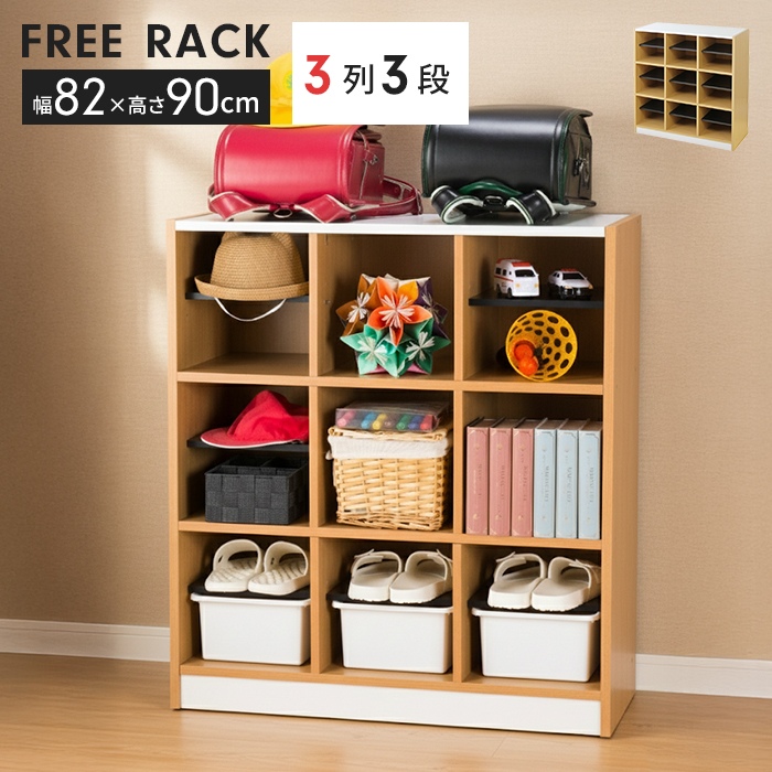 白とナチュラルを基調とした清潔感のあるフリーラック。棚板は固定ですが、中棚は3段階3cmピッチで調整でき、取り外しもできるので、ブーツや長靴も収納OK。スリッパやシューズラックとしてはもちろん、本棚・コミック棚としても◎横揺れ防止金具付き(背面)でしっかり安全にお使いいただけます。1列3段、2列3段、3列3段の3タイプございます。※このページは「3列3段」タイプを販売しております。キーワード: スリッパラック シューズラック 下駄箱 フリーラック 収納 ラック 本棚 コミックラック マンガ コミック 漫画 本 靴入れ ランドセルラック マルチラック 収納ボックス 木製ラック 靴 くつ ブーツ 長靴 玄関収納 靴収納 衣類収納 シューズロッカー ロビー オフィス 会社 施設 塾 病院 サロン クリニック 歯医者 受付 来客 来客用 教室