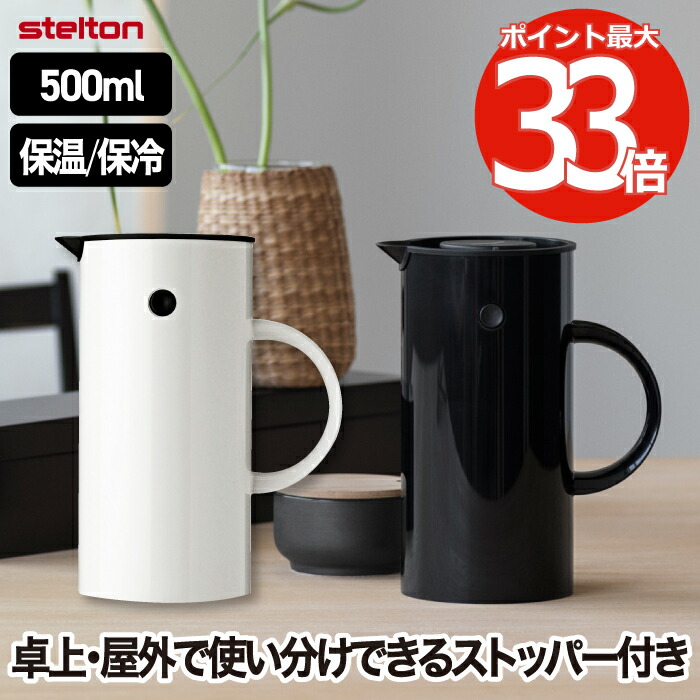 ■Stelton 魔法瓶 ポット おしゃれ EM77 バキュームジャグ 500ml 0.5L 保冷 保温 ガラス 二重構造 キッチン用品 卓上 水差し ボトル 珈琲