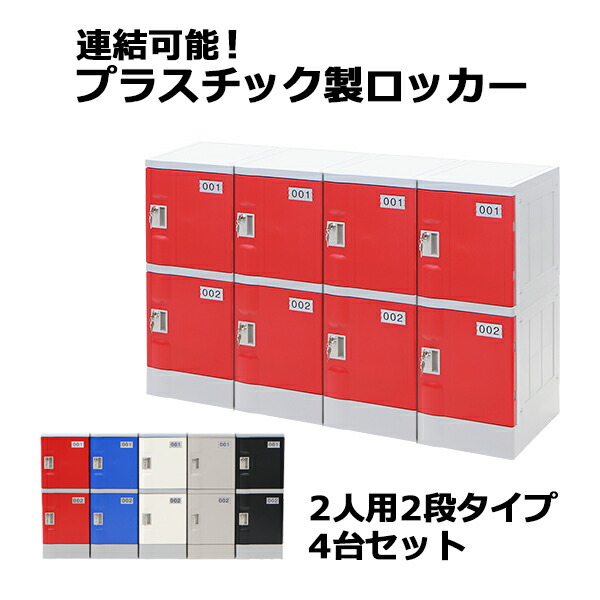 ■プラスチックロッカー ロッカー エコノミーモデル 弊社スチールロッカーより軽い 連結可能 2人用 2段 4台セット おしゃれ 水に強い 鍵付