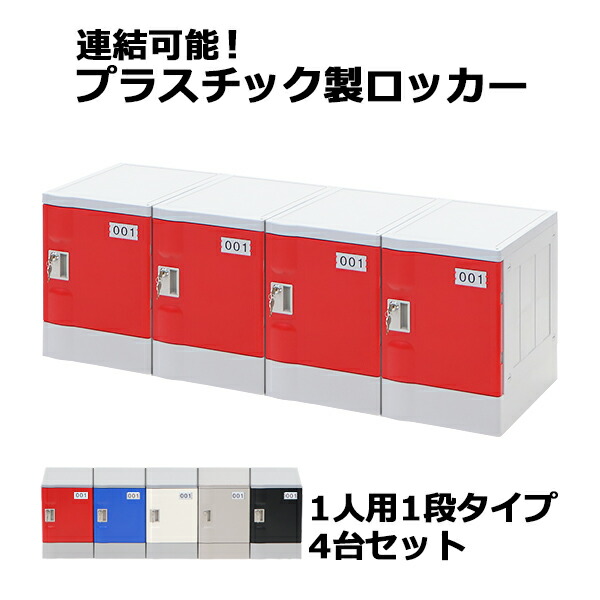 ■プラスチックロッカー ロッカー エコノミーモデル 弊社スチールロッカーより軽い 連結可能 1人用 1段 4台セット おしゃれ 水に強い 鍵付