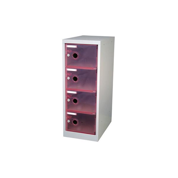 トラスコ TRUSCO スケルトンロッカー 鍵なしタイプ レッド TSL4-R 366-8720 です。 【1列4段】半透明の扉で内容物が確認しやすくなっています。