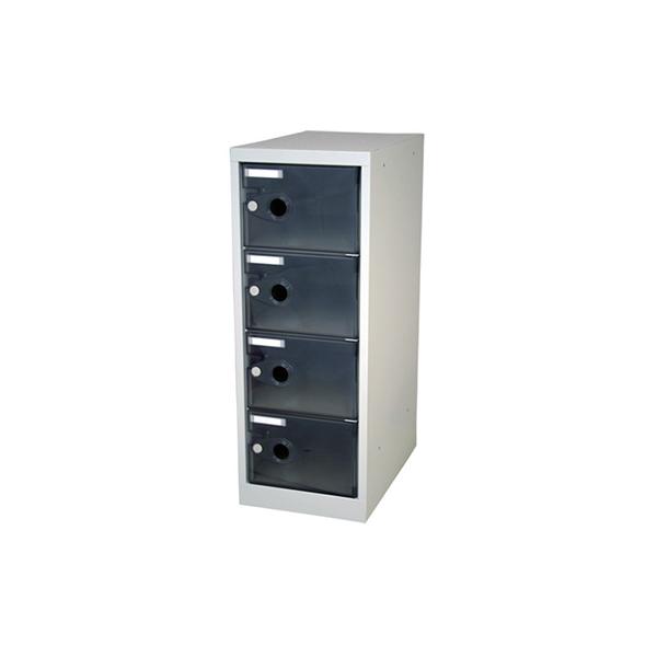 トラスコ TRUSCO スケルトンロッカー 鍵なしタイプ ブラック TSL4-BK 366-8703 です。 【1列4段】半透明の扉で内容物が確認しやすくなっています。