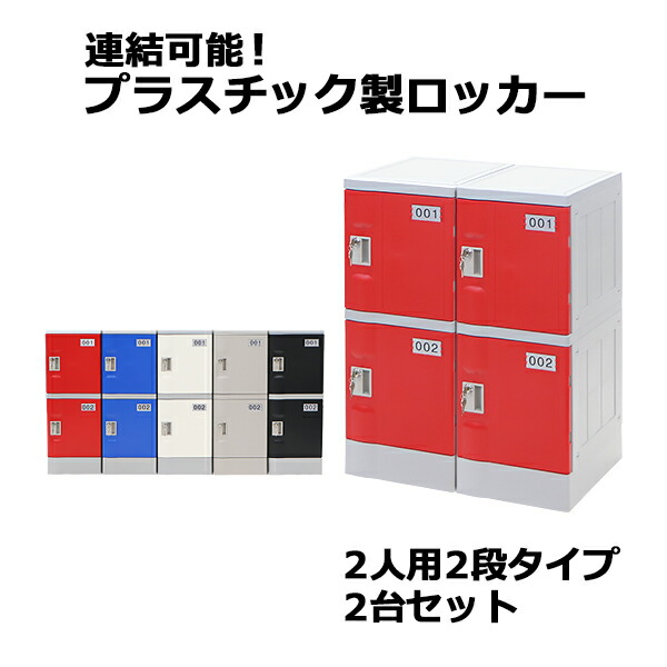 ■プラスチックロッカー ロッカー エコノミーモデル 弊社スチールロッカーより軽い 連結可能 2人用 2段 2台セット おしゃれ 水に強い 鍵付