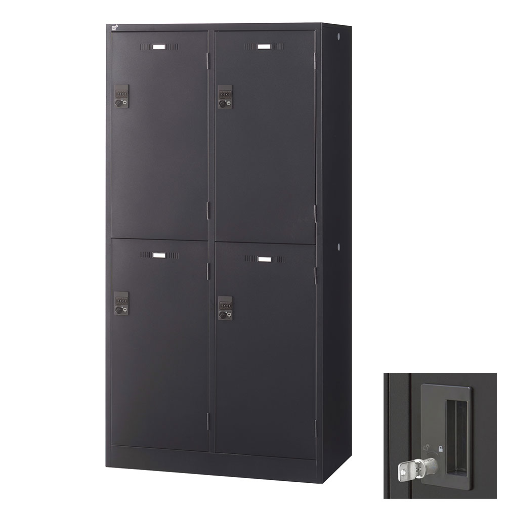 ■『代引不可』ロッカー 更衣室 スチール SLDKロッカー ワイド 2段 4人用 内筒交換錠 ブラックサテン SLDK-4WS-T 生興『送料無料(一部地域