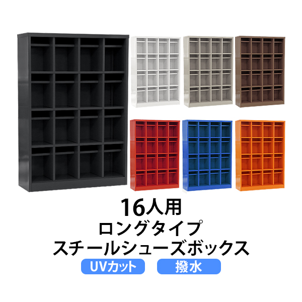 ■ロッカー おしゃれ スチール シューズボックス 16人用 ロングタイプ オープンタイプ 棚板付き 扉なし 4列4段 UVカット 撥水 防錆 シュー