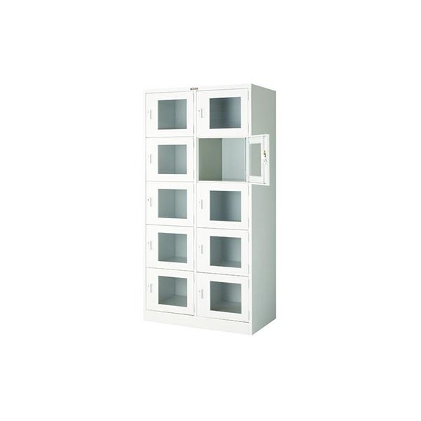トラスコ TRUSCO 窓付多人数ロッカー ホワイト WSV10MA 454-1014 です。 【10人用】窓付のため、中の収納物や使用状況が容易に確認できます。