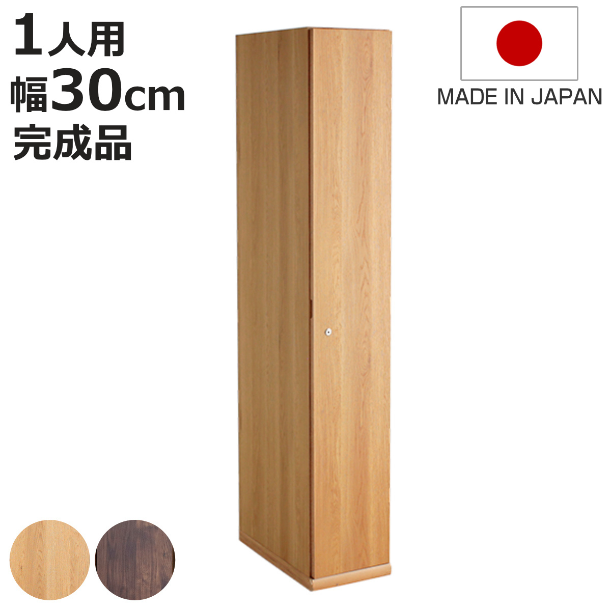 ■木製ロッカー 1人用 幅30cm 鍵付 日本製 完成品 ( ロッカー ハンガーパイプ付 収納 鍵 棚 家具 木製 荷物 ハンガーバー 扉付き 収納ボッ