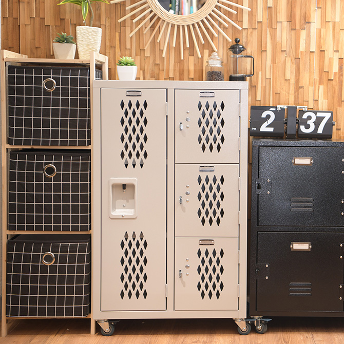 ■備考:海外のスクールやオフィスにありそうなロッカーに、キャスターをつけて可動式チェストに。扉はそれぞれ鍵が付けられるので、書類の管理にも最適です。■商品サイズ:幅58×奥行38.5×高さ98cm■カラー:アイボリー、グレー■材質:スチール(粉体塗装) ハンマートーン仕上■原産国:中国■パッケージサイズ:幅98×奥行63×高さ45cm■商品重量:15kg■お届け状態:組立式