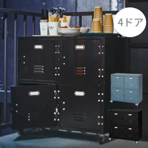■ロッカー 4個セット 幅75 ロータイプ キャスター付き スチール 丈夫 キャビネット チェスト おしゃれ ネームプレート付き 南京錠対応 オ