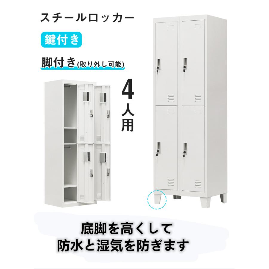 ロッカー スチールロッカー おしゃれ 脚付き 4人用 ホワイト 鍵付き シリンダー錠 スペアキー付 2列2段 スチール製 収納 オフィス 事務所 会社 業務用