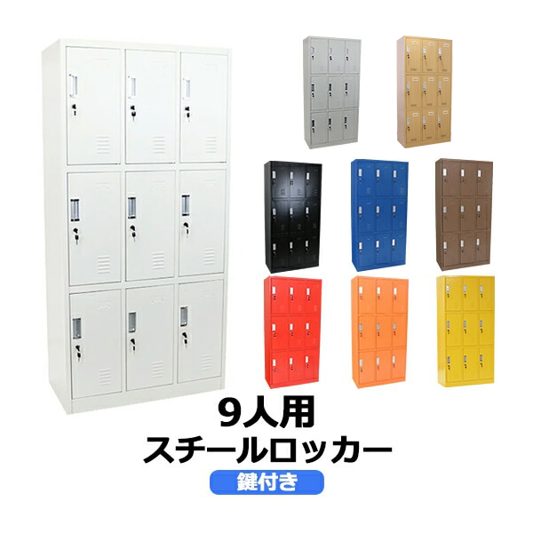 ■ロッカー おしゃれ スチールロッカー 9人用 鍵付き スペアキー付き 3列3段 スチール製 収納 オフィス 事務所 会社 店舗 病院 学校 業務用