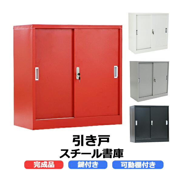 ■ロッカー おしゃれ スチール書庫 完成品 引き戸タイプ 鍵付き スペアキー付き 可動棚付き 書庫 スチール製 保管庫 収納 オフィス 事務所