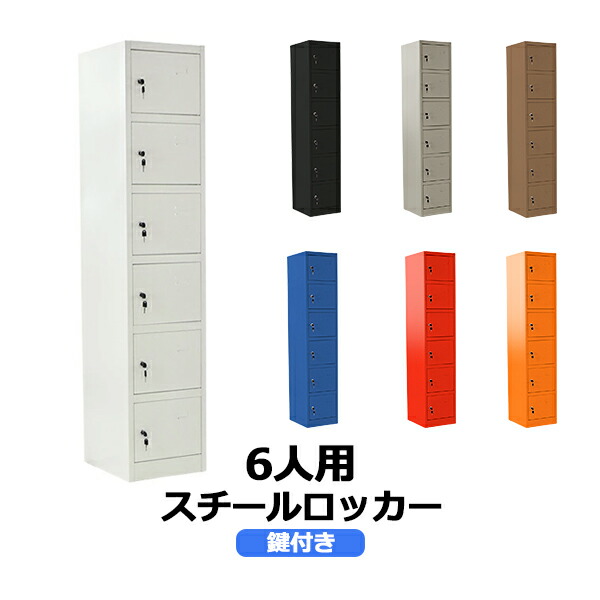 ■ロッカー おしゃれ スチールロッカー 6人用 鍵付き スペアキー付 1列6段 スチール製 収納 オフィス 事務所 会社 店舗 業務用 更衣室 オフ