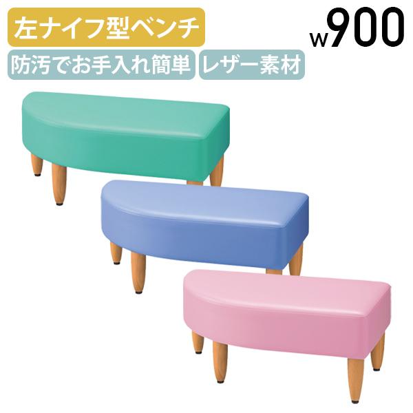■ナイフ型ロッカールームベンチ W900 D515 H400 左ナイフ型 防汚レザー 更衣室 事務所 オフィス 施設 グリーン/ブルー/ピンク 代引不可 法