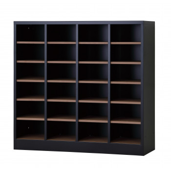 ■豊國工業 シューズロッカーH960(4列6段) USL-46-MB-NT 本体:マットブラック棚板:ナチュラル