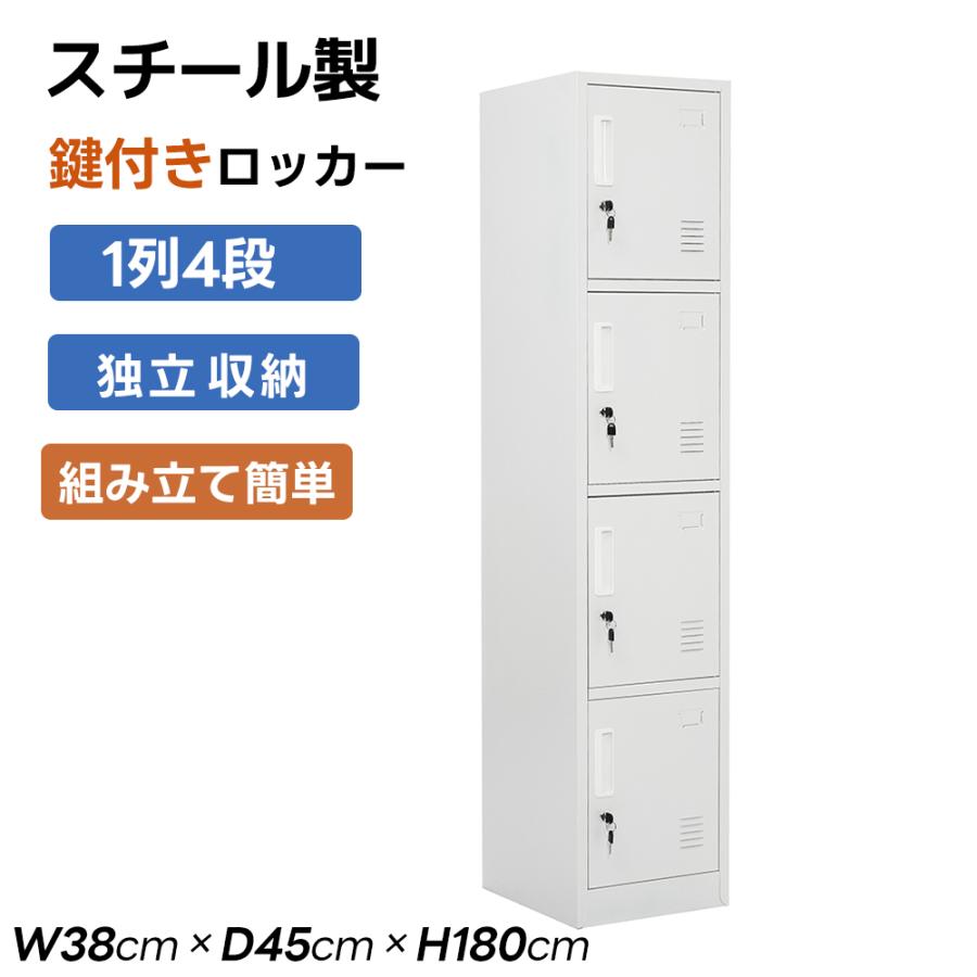■ロッカー おしゃれ 完成品 スチールロッカー 4人用 鍵付き スペアキー付 4列1段 スチール製 オフィス 事務所 会社 業務用 オフィスロッカ