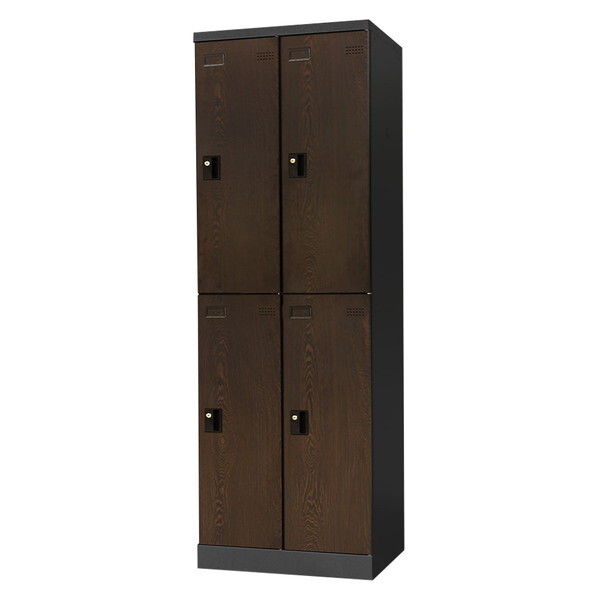 ■【法人限定】 Netforce EA-S4-SC-W-DBR ブラック×ダークブラウン [スチールロッカー 4人用 スリム シリンダー錠 木目調] メーカー直送