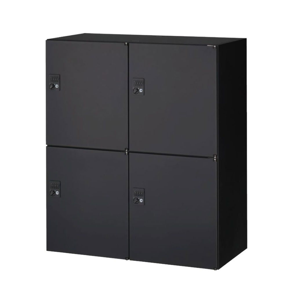 ■『代引不可』スチールロッカー 鍵付 4人用パーソナルボックス ダイヤル錠 下置用 ブラック RK45-N410H-D3 W900 クウォール 生興