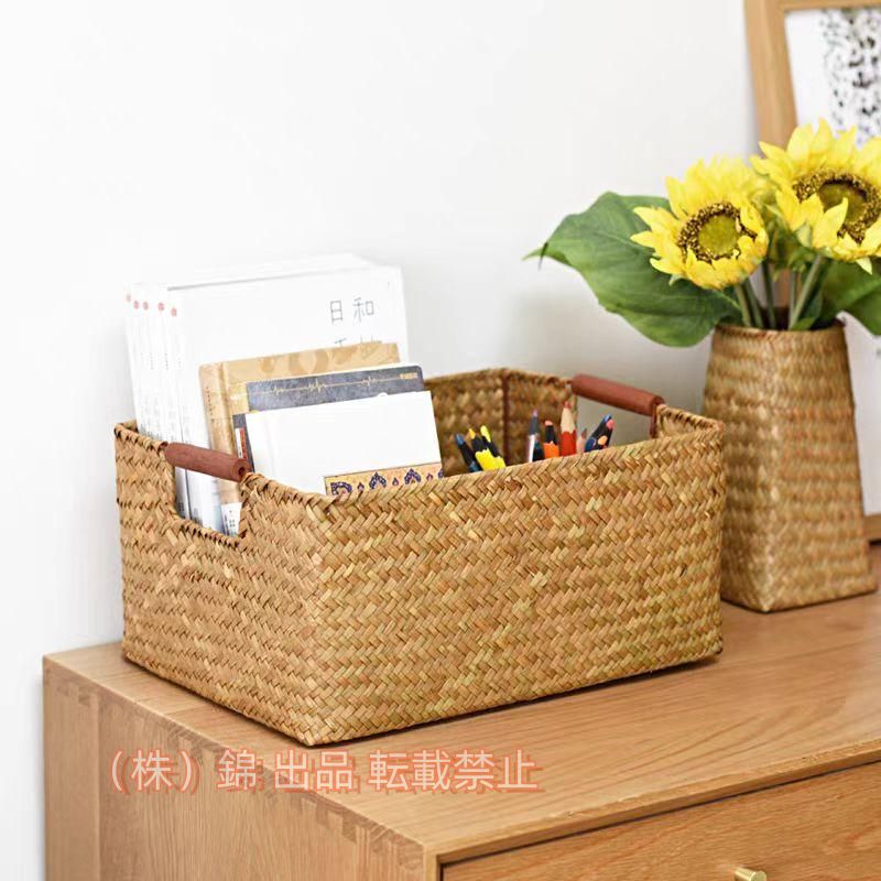 ■収納バスケット収納ボックス田園風の柳藤編手のかごポータブル収納かごバスケットラタンかご籘編み観葉植物錦花鉢籐の収納バスケットフル