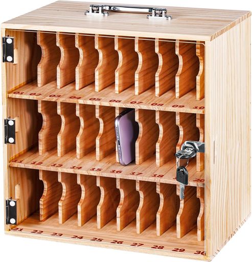 ■MXBAOHENG 木製スマホ収納ボックス 組み立て不要 30仕切り 鍵付き保管ボックス 試験場/教室/会社/塾など対応 管理ボックス 充電穴ある 紛